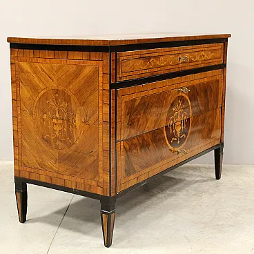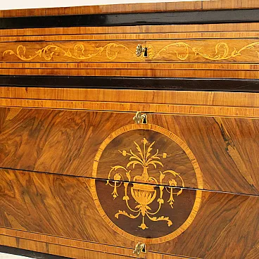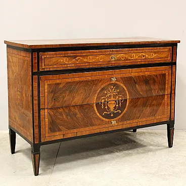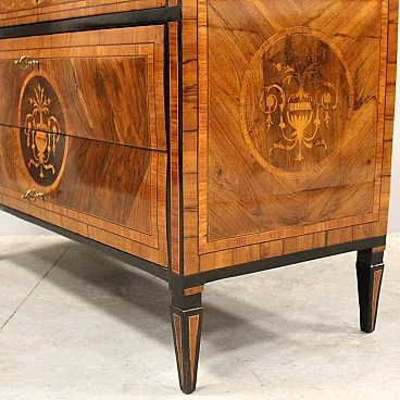 Cassettone comò Luigi XVI in noce intarsiato Italia '700