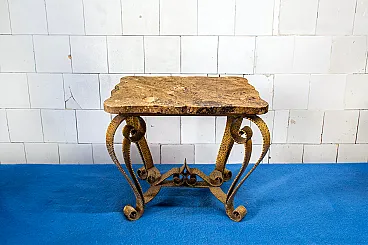 Tavolino da caffè in ferro dorato e marmo di Colli, anni '50