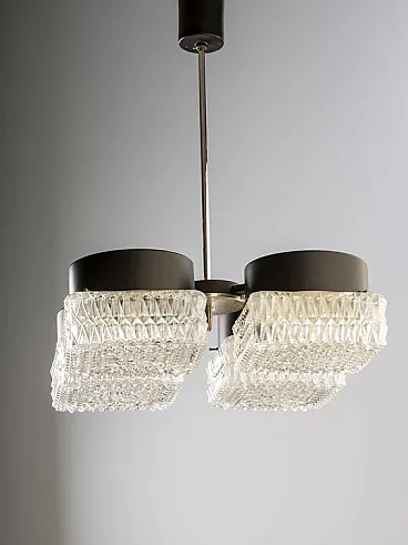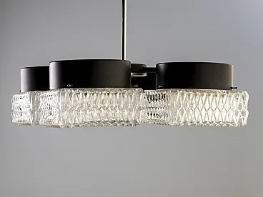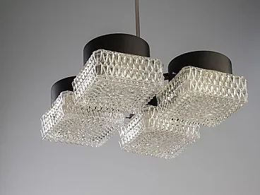 Lampadario a quattro luci in vetro e metallo di Napako, fine '900