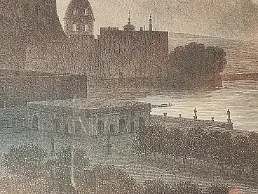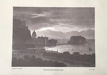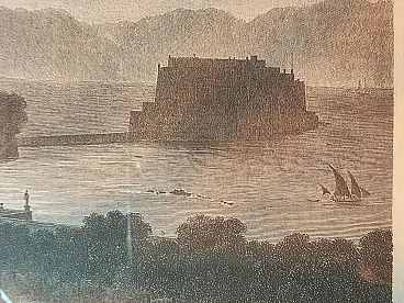 Stampa di paesaggio di Napoli vista su Castel dell’Ovo, 20s