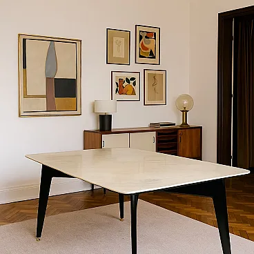 Tavolo da pranzo con piano in marmo e gambe in faggio, '900