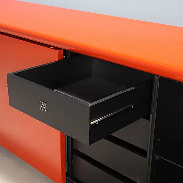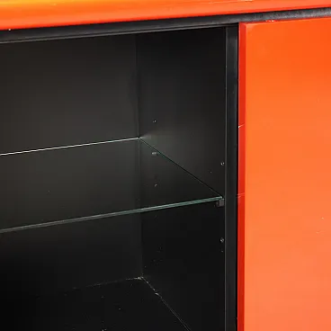 Credenza con ante scorrevoli e battenti in legno laccato rosso, '900