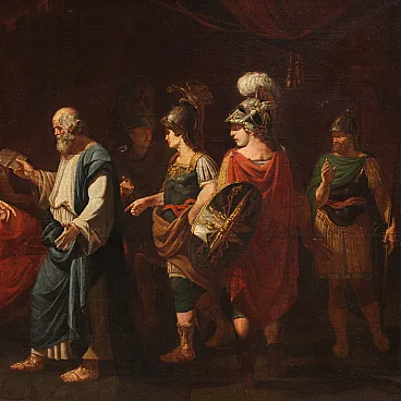 Dipinto Neoclassico con Alessandro Magno, olio su tela, '700