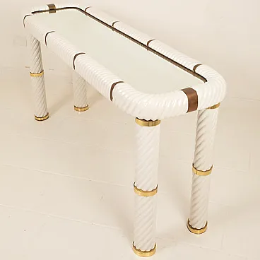 Parte della produzione più esclusiva di Tommaso Barbi, questa consolle riflette lo spirito del design italiano degli anni ’70 più sofisticato, quello che guarda al Hollywood Regency e al Italian Glam, ma con una raffinatezza tutta europea, capace di trasformare la materia in luce e la forma in emozione.