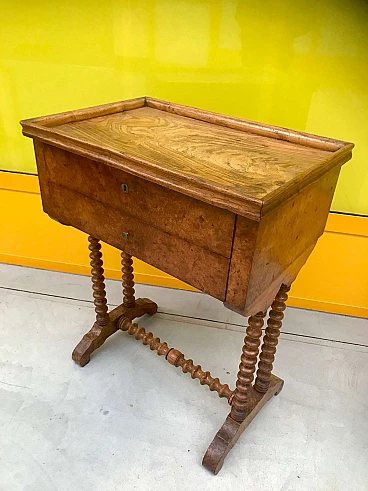Tavolino Carlo X in radica d’Olmo a due cassetti, originale primi '800