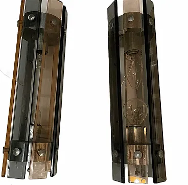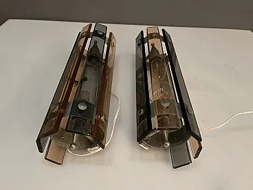 Coppia di applique in vetro rosa e grigio di metà secolo, anni '70