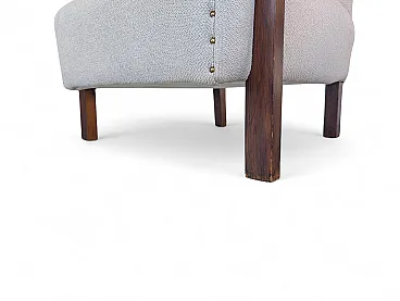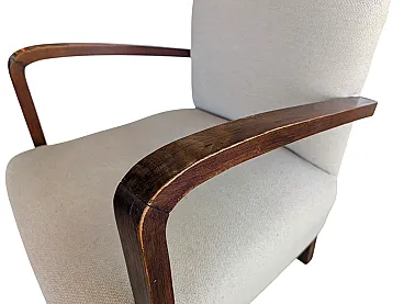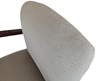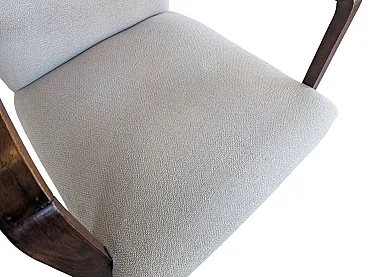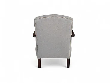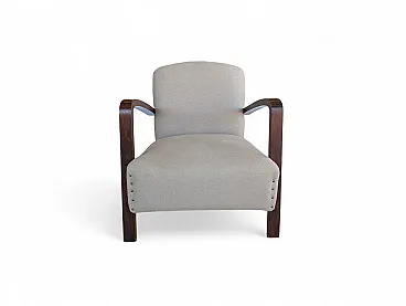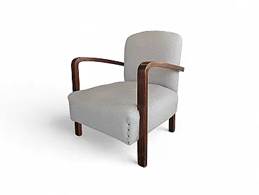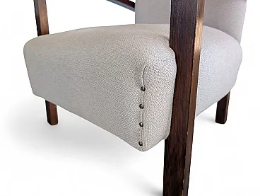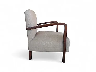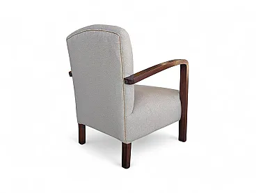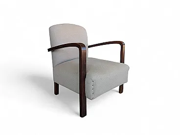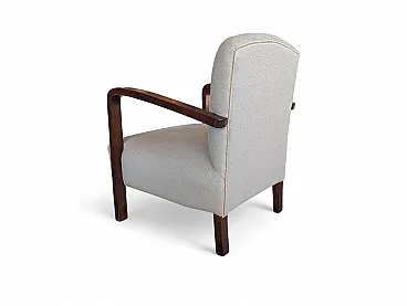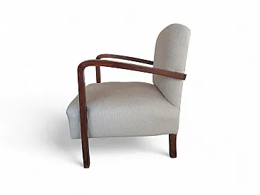 Poltrona in legno scuro e tessuto chiaro, anni '50
