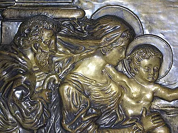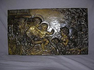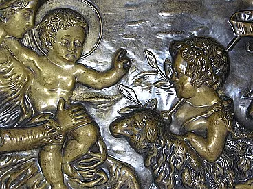 Piatto in ottone sbalzato con decoro Sacra Famiglia, primo '900