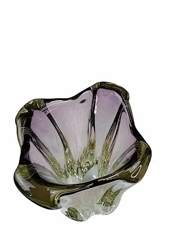 Il vaso si distingue per linee eleganti e forme morbide che evidenziano la maestria del vetro soffiato e delle decorazioni. L'uso del vetro soffiato a mano dona ogni volta un risultato unico, con variazioni di colore che fanno di ciascun pezzo un'opera d'arte.