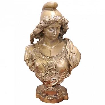 Raffinata scultura busto in bronzo dorato la Marianne di Francia. Marianne è la rappresentazione nazionale allegorica della Repubblica francese. Raffigurata come una giovane donna dal cappello frigio (copricapo rosso conico con la punta ripiegata in avanti), la Marianne personifica la Repubblica francese e rappresenta la permanenza dei valori della Repubblica, ossia Liberté, Égalité, Fraternité. La prima rappresentazione di una donna col berretto frigio, allegoria della Libertà e della Repubblica, appare nella rivoluzione francese. L’origine del nome Marianne non è noto con certezza, sebbene fosse molto diffuso nel XVIII secolo. Essa rappresenta la popolazione che si libera dalla monarchia e la nascente Repubblica. Prezzo trattabile inviate pure la vostra proposta di acquisto.