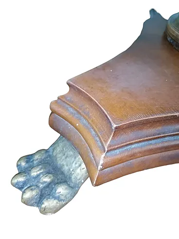 La struttura in legno massiccio, finemente lavorata, è arricchita da dettagli in bronzo, che si ritrovano nei piedi del leggio, scolpiti in forme eleganti e complesse. Il bronzo, con la sua finitura lucida o antichizzata, conferisce un aspetto di raffinatezza e durabilità.