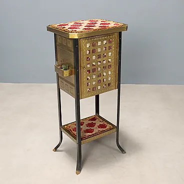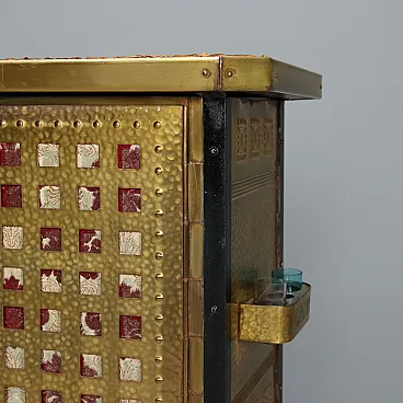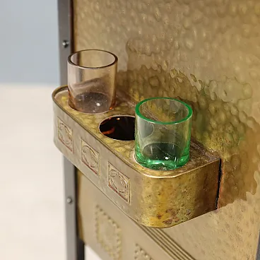 Mobile bar in stile liberty in lamiera di rame ottonata, primo '900