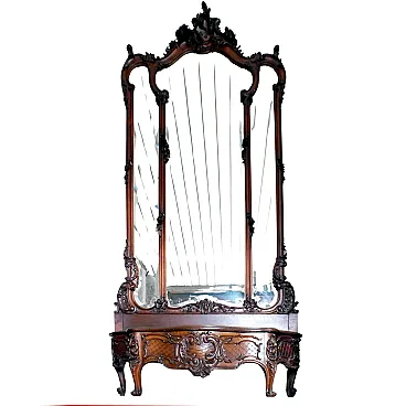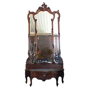 Specchiera da parete Liberty bisellata con fioriera in noce, anni '20