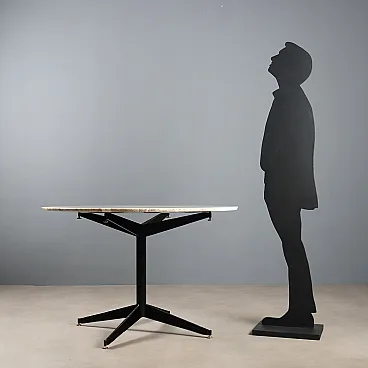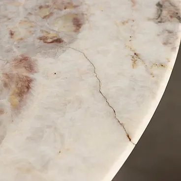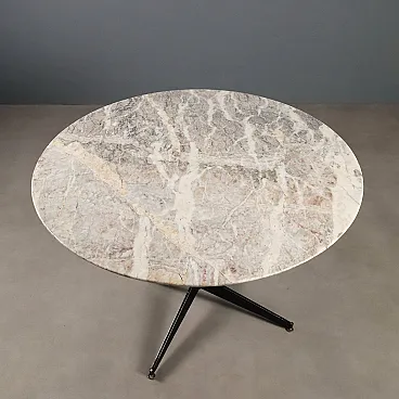 Tavolo in metallo smaltato, piedini in ottone e piano in marmo, '900