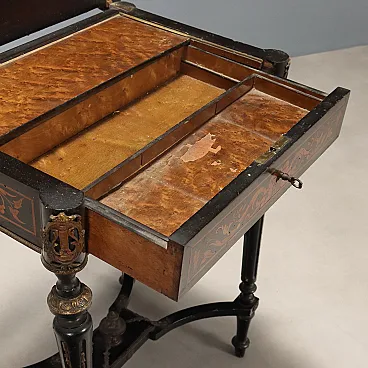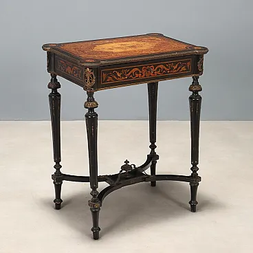 Tavolo da lavoro in legno ebanizzato e bronzo, fine '800