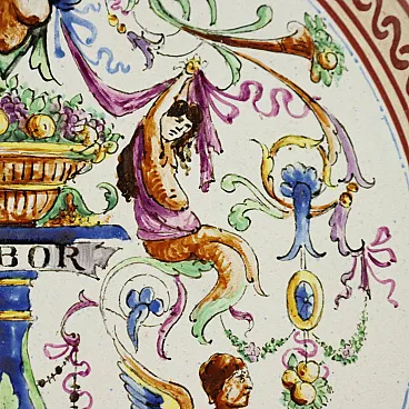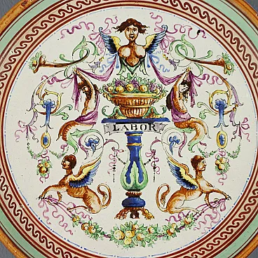 Piatto in maiolica con decoro policromo, anni '20
