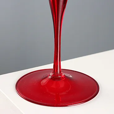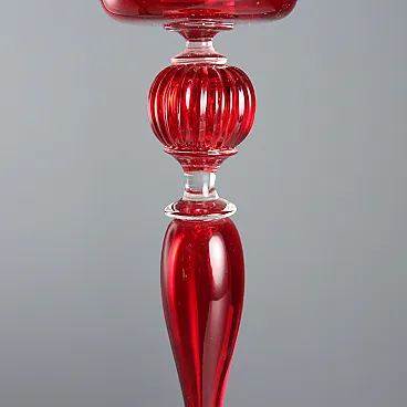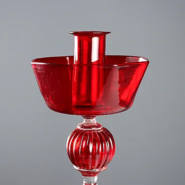 Candeliere in vetro di Murano rosso con raccogligocce, '900