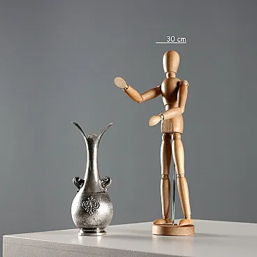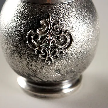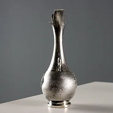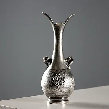 Vaso biansato in argento inciso, cesellato e lavorato a bulino, '900