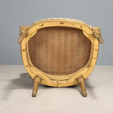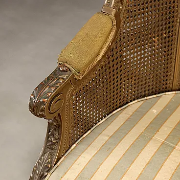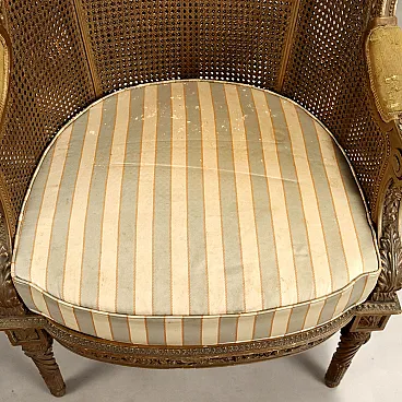 Poltrona in canna, tessuto e paglia di Vienna con cuscino, fine '800