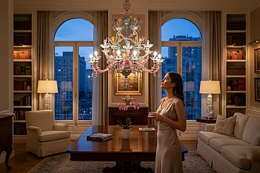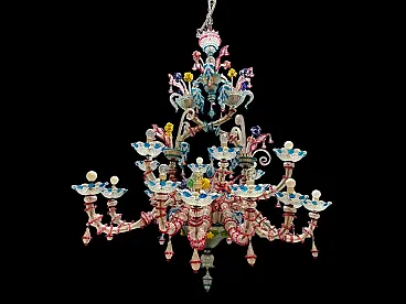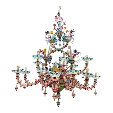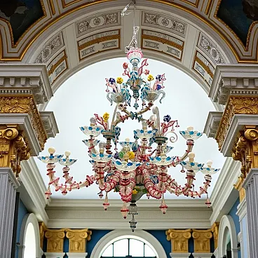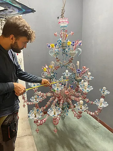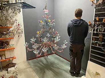 Lampadario Rezzonico grande in vetro di Murano, Venezia, anni '50