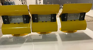 3 Applique Mid-Century in metallo giallo, Italia, anni '70