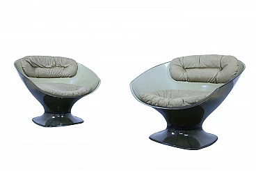 Coppia di poltroncine con scocca in plexiglass e rivestimento originale in alcantara.