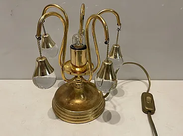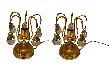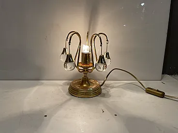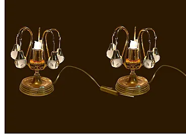 Coppia di lampade da tavolo in ottone e cristallo, anni '70