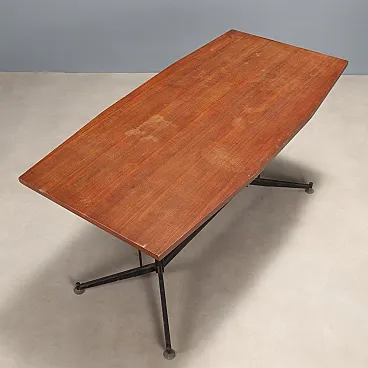 Tavolo in teak, metallo e ottone, '900