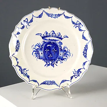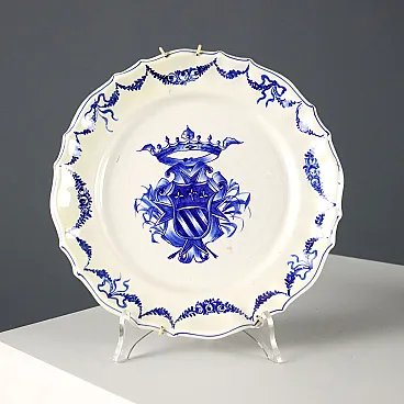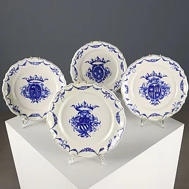 4 Piatti in ceramica blu con stemmi e ghirlande, '900