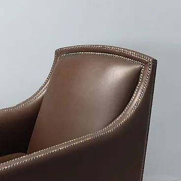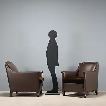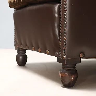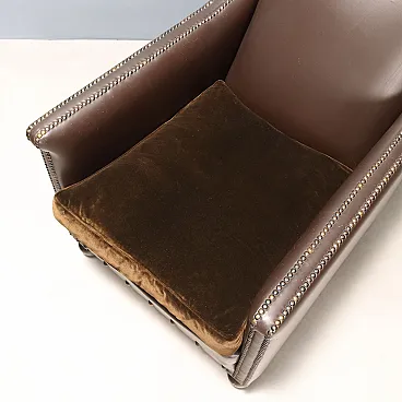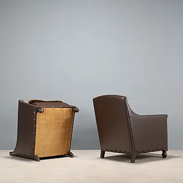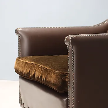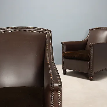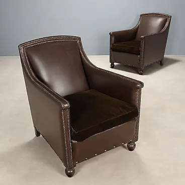 Coppia di poltrone in pelle con cuscini in velluto, '900
