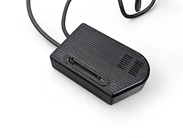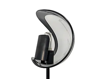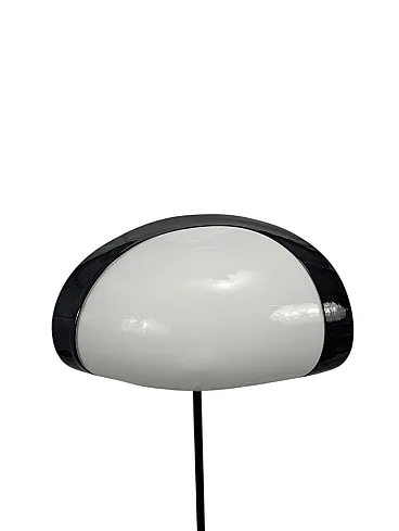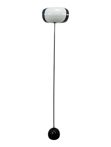 Piantana nera in struttura metallica con paralume in vetro anni '70
