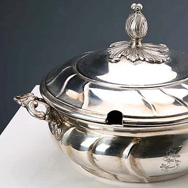 Ciotola per legumi in argento 830 sbalzato, scanalato e cesellato,'900