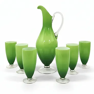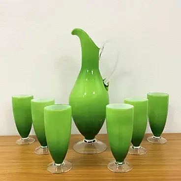 Brocca con 6 bicchieri in vetro di Murano, anni '60