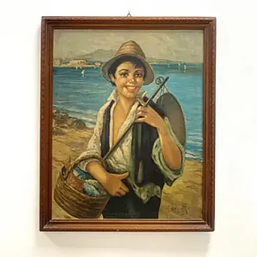 Giovane pescatore italiano di G. De Curtis, olio su tela, '900