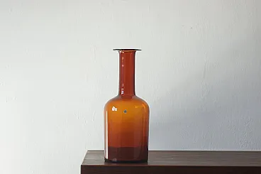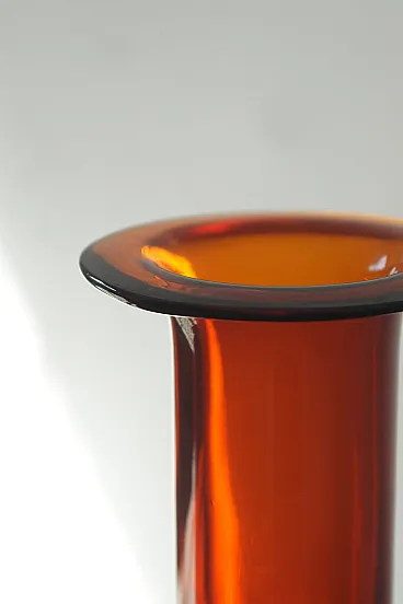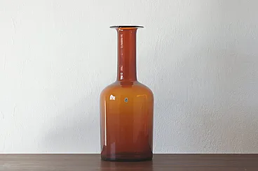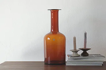 Il vaso disegnato da Otto Brauer per la vetreria danese Holmegaard è uno degli esempi più riconoscibili del design scandinavo del XX secolo. Il pezzo presentato risale ai primi anni di produzione e si distingue per il raro colore marrone del vetro, che aggiunge eleganza e carattere unico. Il modello ha un'altezza impressionante di 45 cm, che lo rende non solo un recipiente funzionale, ma anche un oggetto decorativo di grande effetto. L'etichetta originale del produttore, datata intorno al 1907-1965, è stata conservata sulla superficie, sottolineando ulteriormente l'autenticità e il valore collezionistico del vaso. La caratteristica forma minimalista con collo cilindrico e base massiccia è l'essenza dello stile moderno della metà del secolo, in cui Otto Brauer combinò magistralmente la semplicità delle linee con l'eleganza dei colori e la nobiltà del vetro. Un pezzo del genere è una vera chicca per i collezionisti di design danese, soprattutto a questa altezza e con l'etichetta originale conservata. Il vaso disegnato da Otto Brauer è noto come "Gulvvase" (vaso da terra). È stato progettato alla fine degli anni Cinquanta ed è entrato in produzione regolare negli anni Sessanta. La sua forma semplice e cilindrica si ispira alle bottiglie di medicinali, che all'epoca erano diventate un motivo popolare nel design moderno. Holmegaard produsse Gulvvase in diverse altezze - da 25 a 60 cm - e in un'ampia gamma di colori: dal classico blu cobalto, al verde oliva, al meno comune marrone. Oggi è uno dei vetri danesi più collezionati, presente nei musei di design e spesso definito "icona del minimalismo scandinavo"