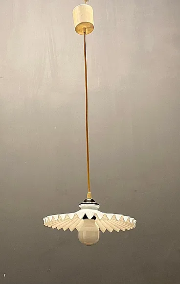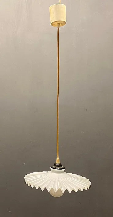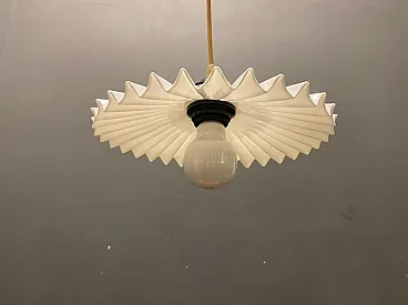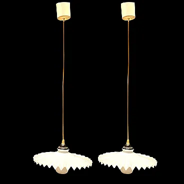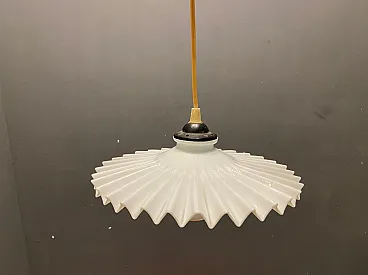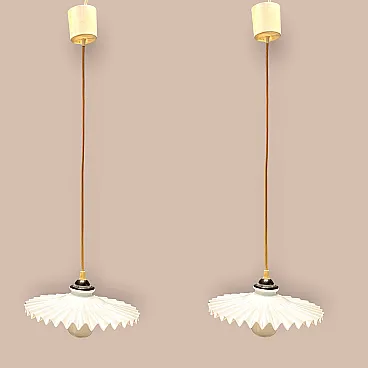 Coppia di lampade a sospensione in vetro opalino plissettato, anni '70
