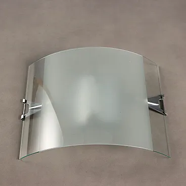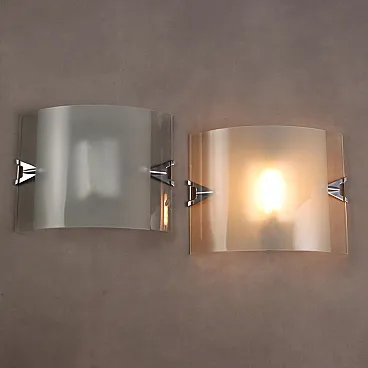 Coppia di applique in vetro sabbiato, alluminio e acciaio, '900