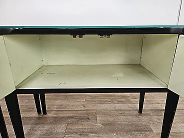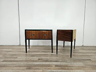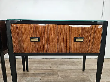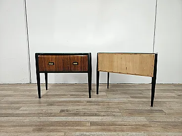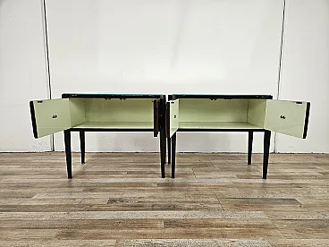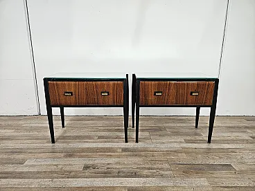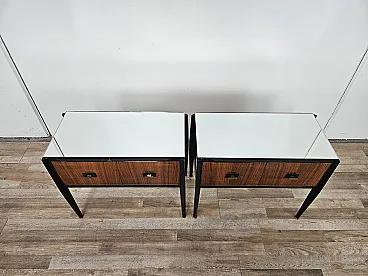 Coppia di comodini lineari con piano specchiato, anni '60