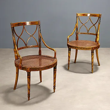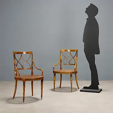 Coppia di poltrone in noce laccato e paglia di Vienna, metà '800