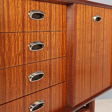 Credenza impiallacciata in teak e inserti in metallo, '900