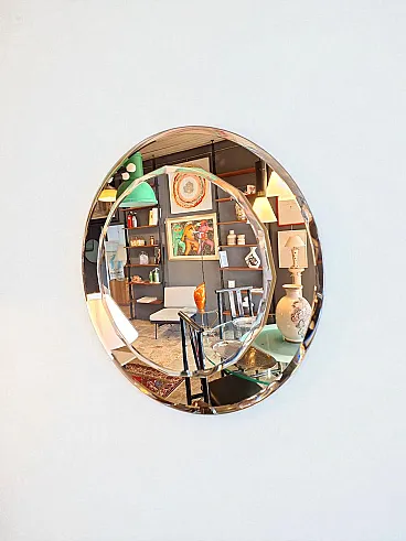Specchio rotondo con cornice in vetro di Cristal Art, anni '60