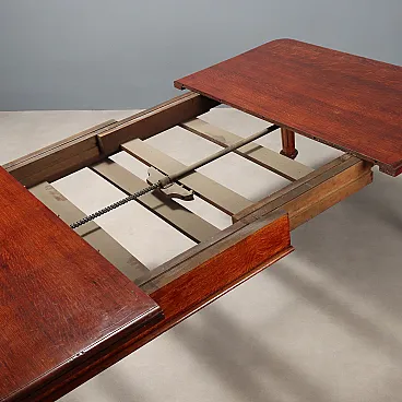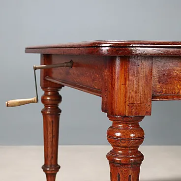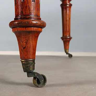 Tavolo in rovere tinto mogano con rotelle in ottone, metà '800