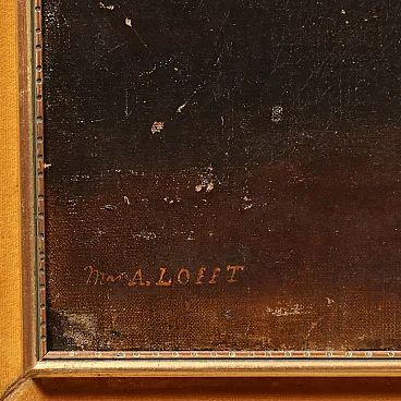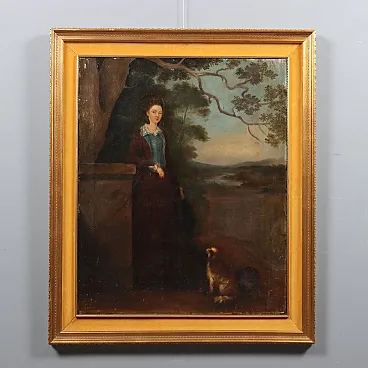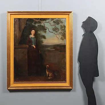 Ritratto di una giovane donna con il suo cane, olio su tela, '800
