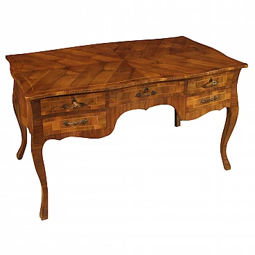 Scrivania italiana in legni di noce, acero e legni da frutto, '900