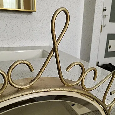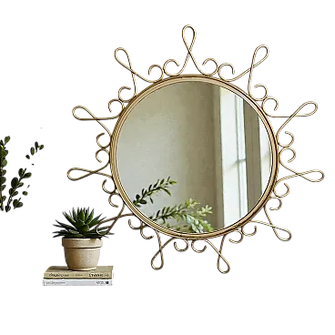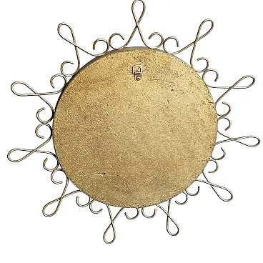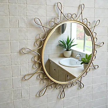 Specchio maggiordomo dorato con effetto sunburst convesso, anni '70
