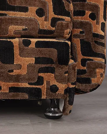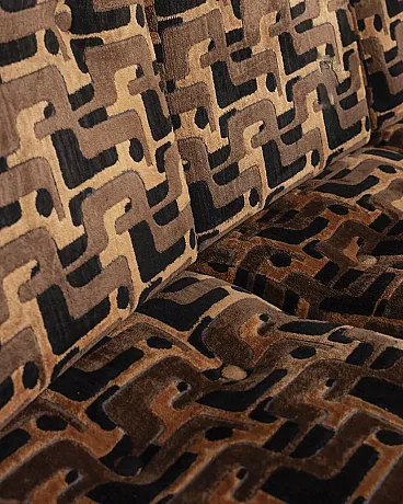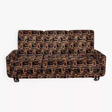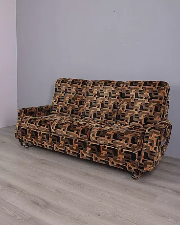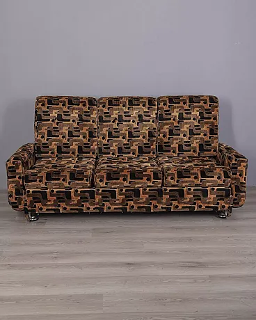 Divano a tre posti in velluto multicolore, anni '70