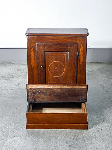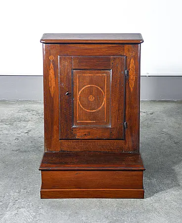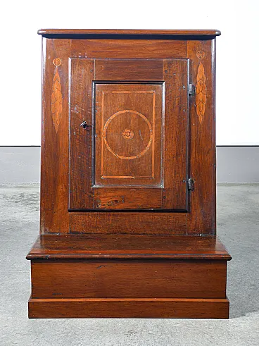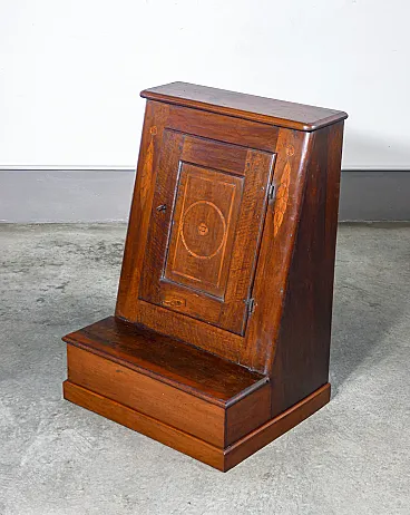 Inginocchiatoio in noce intarsiato con anta e scomparto, '800