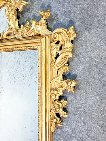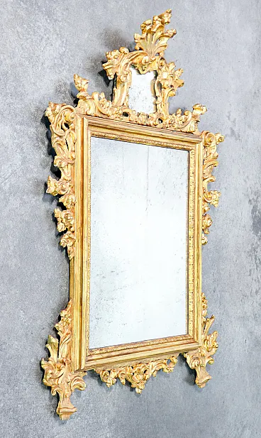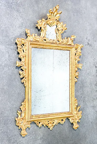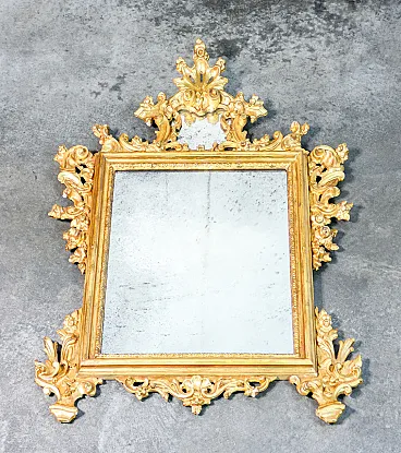 Specchio Luigi XV in legno scolpito gessato e dorato, '700