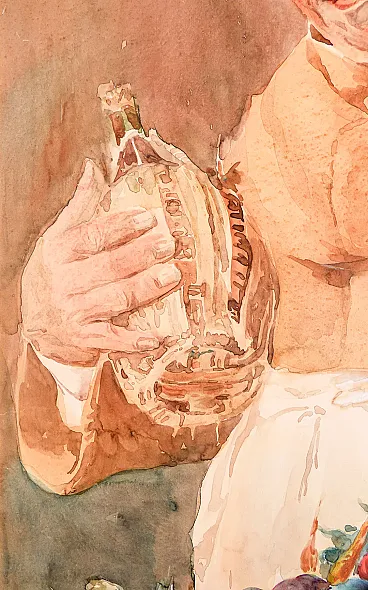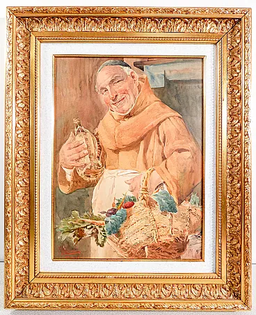 Il frate cuciniere di Pompeo Massani, acquerello, '800