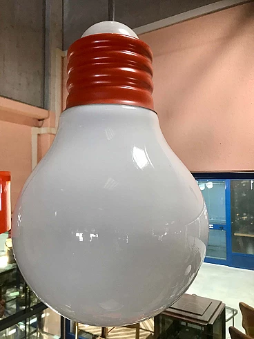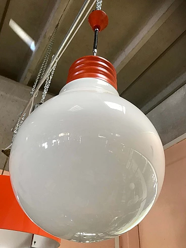 Lampada da soffitto a forma di maxi lampadina, arancione e bianca, originale anni '70